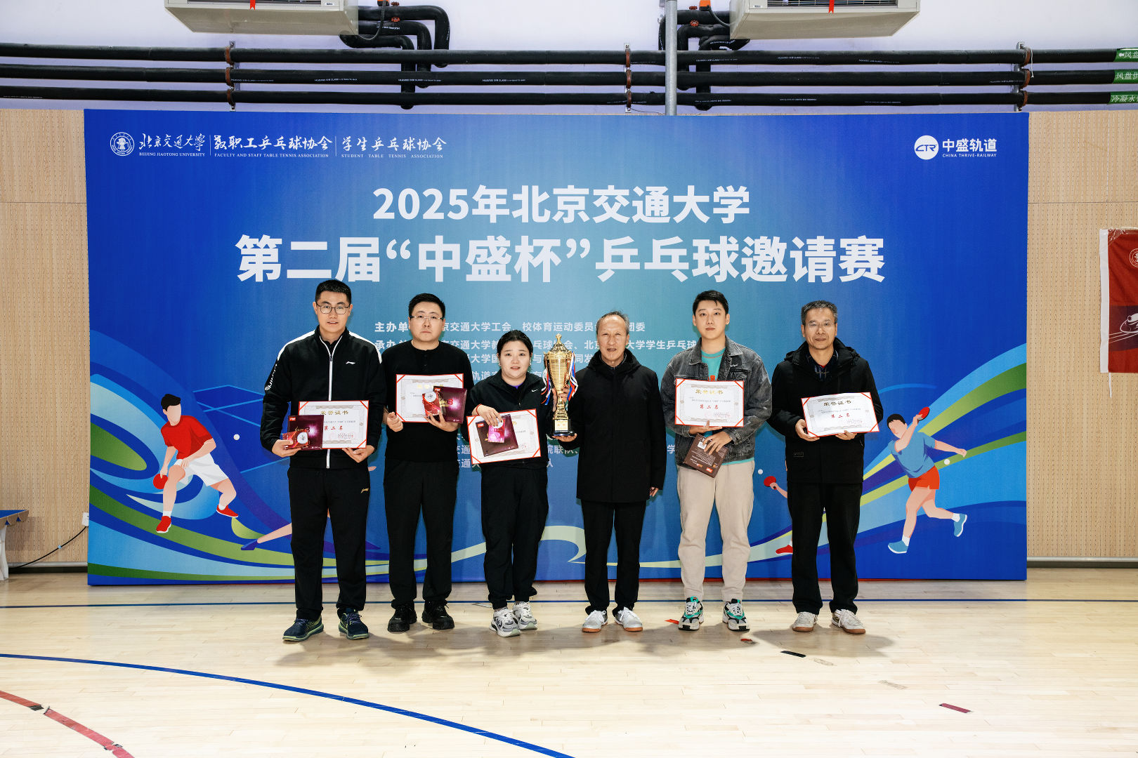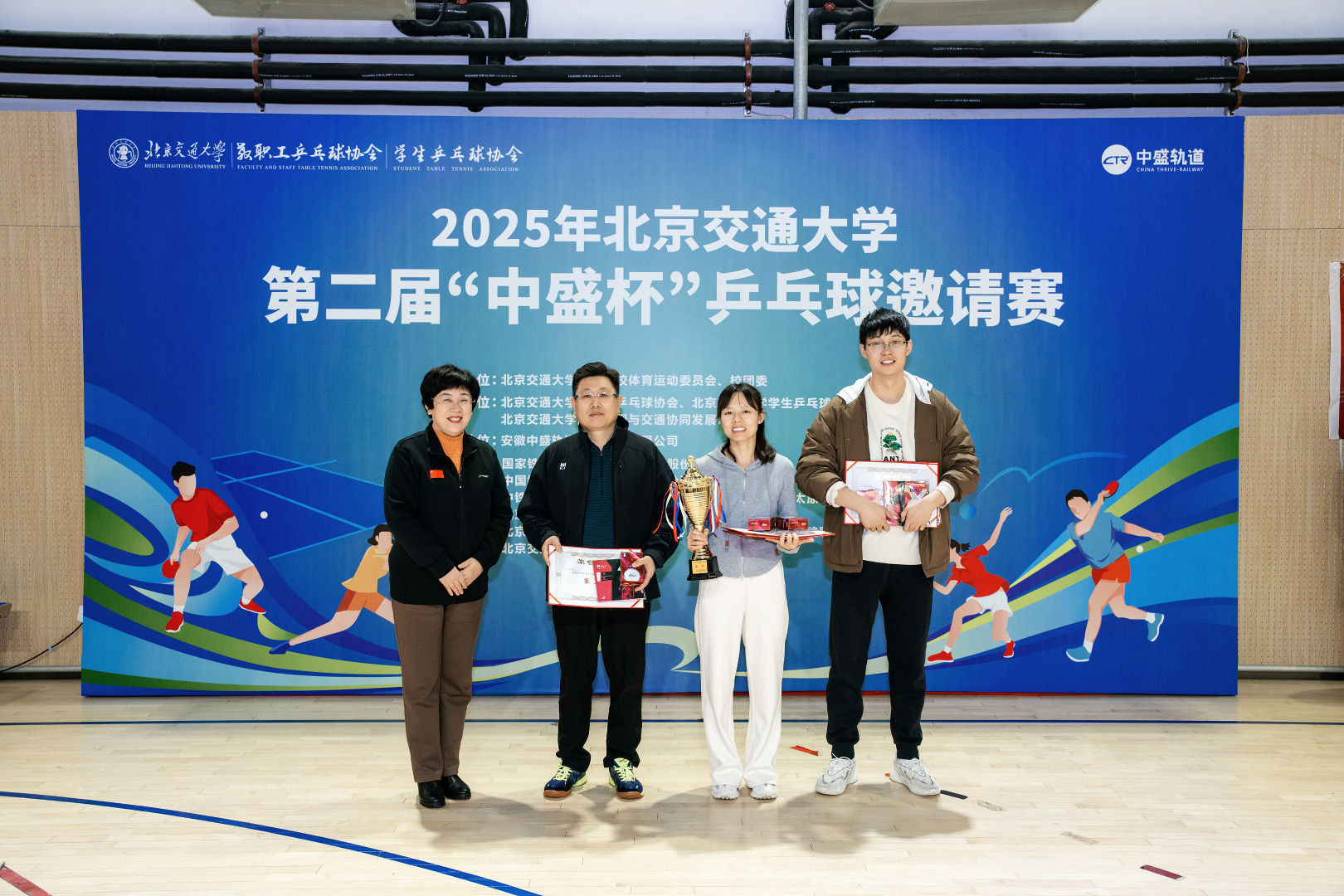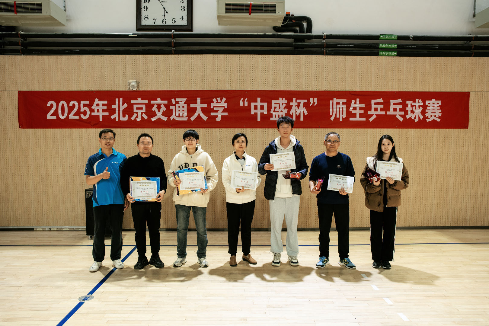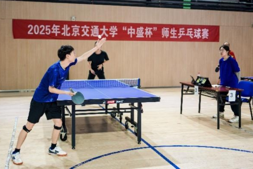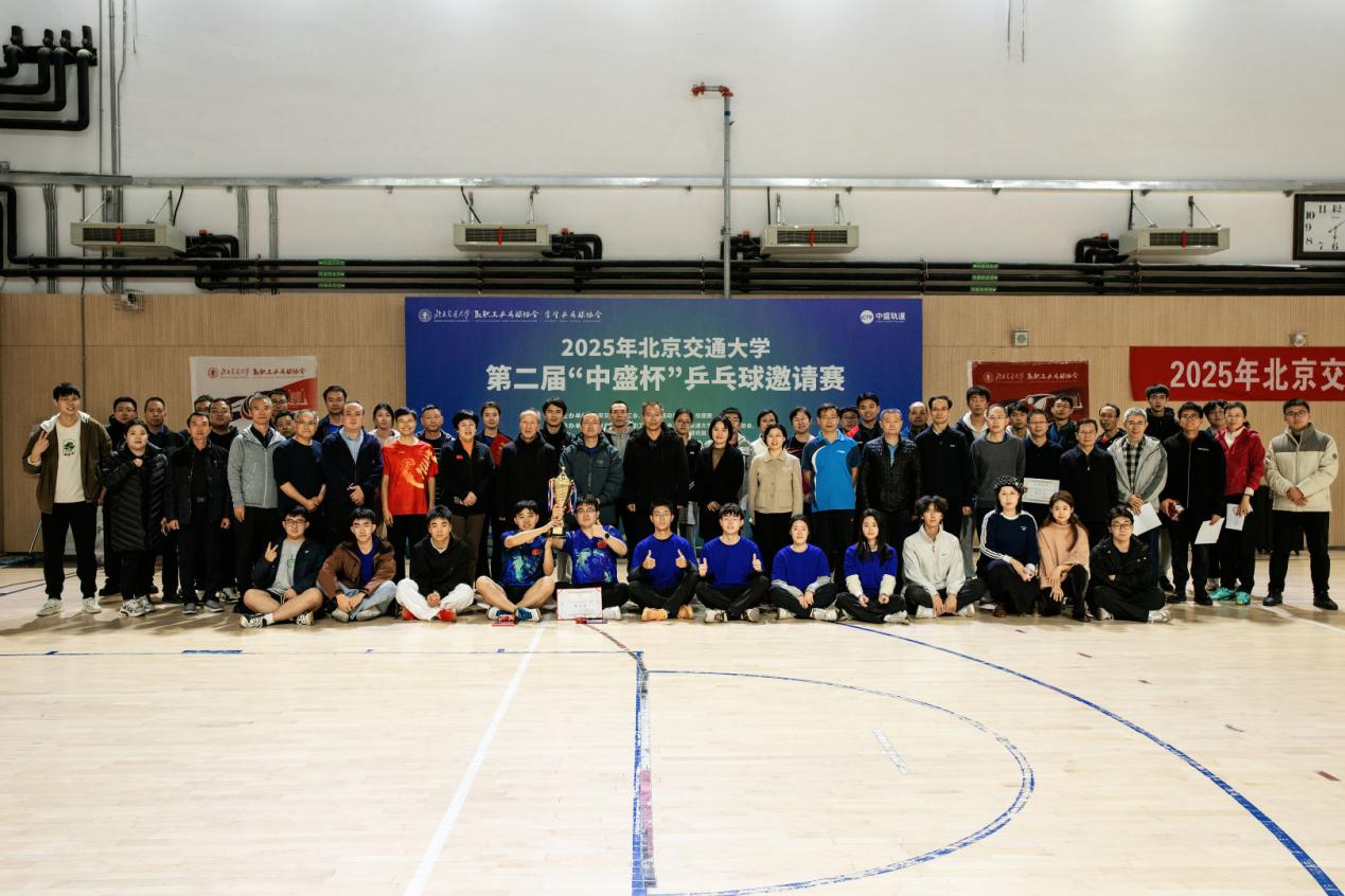 11月8日,北京交通大学“中盛杯”第四届师生乒乓球比赛暨第二届乒乓球校友邀请赛在我校新综合体育馆内顺利举行。这场由校体育运动委员会、工会主办,教职工乒协、学生乒协承办,国土空间与交通协同发展研究院协办,安徽中盛轨道交通产业有限公司赞助的盛大赛事,不仅充分展现了交大人精湛的乒乓技艺与昂扬风貌,更成为串联师生情谊、联结校友与母校情感的温暖纽带。