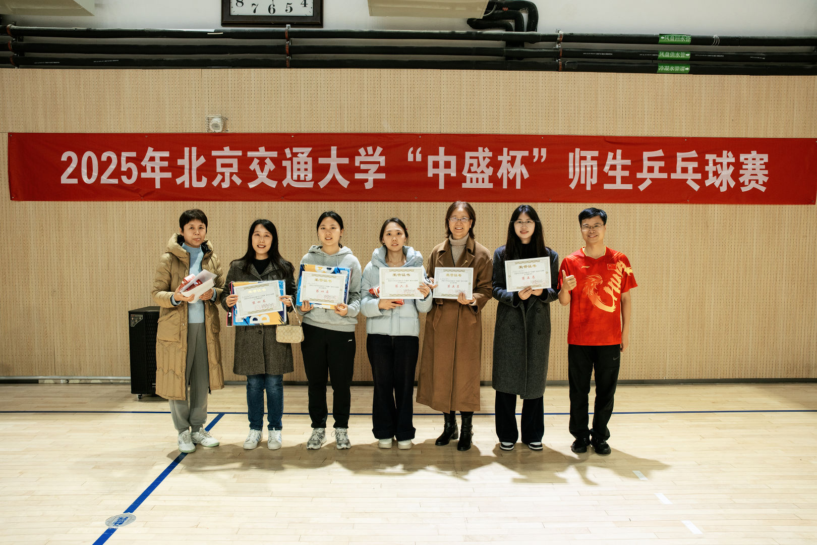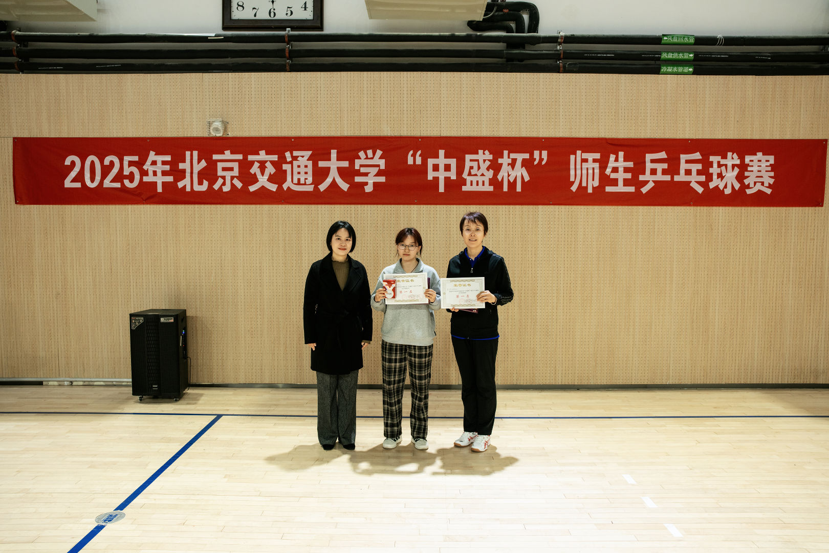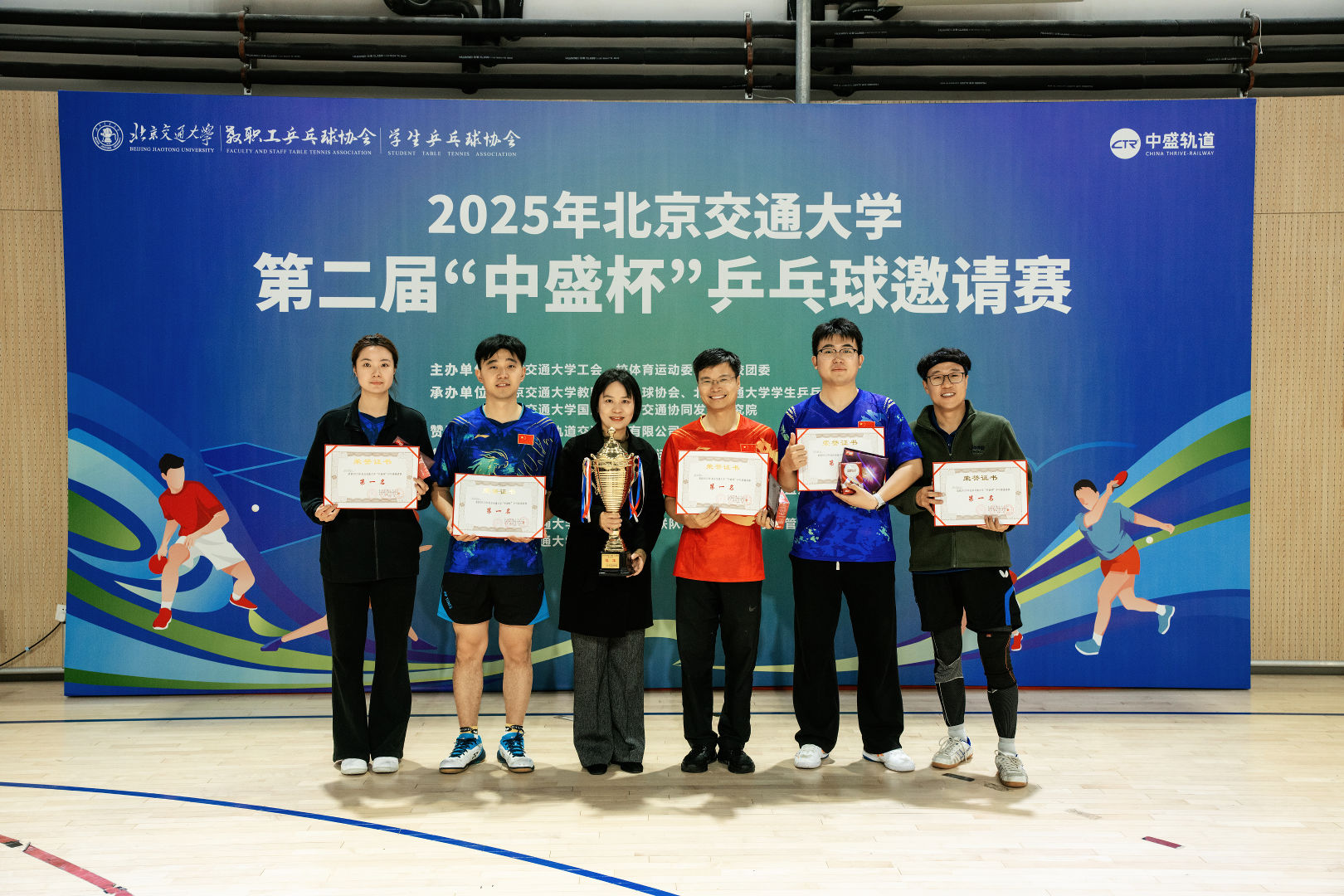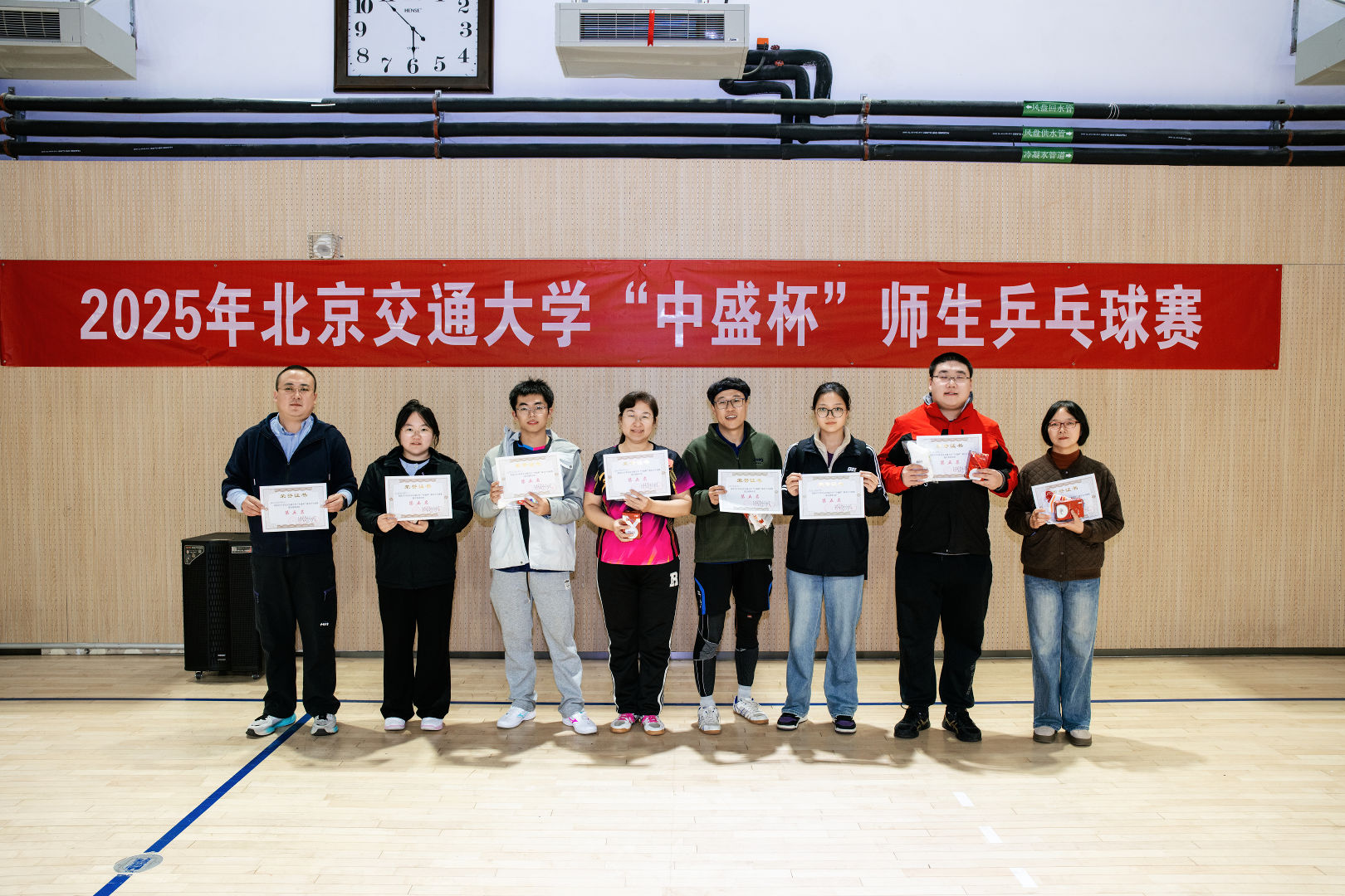 11月8日,北京交通大学“中盛杯”第四届师生乒乓球比赛暨第二届乒乓球校友邀请赛在我校新综合体育馆内顺利举行。这场由校体育运动委员会、工会主办,教职工乒协、学生乒协承办,国土空间与交通协同发展研究院协办,安徽中盛轨道交通产业有限公司赞助的盛大赛事,不仅充分展现了交大人精湛的乒乓技艺与昂扬风貌,更成为串联师生情谊、联结校友与母校情感的温暖纽带。