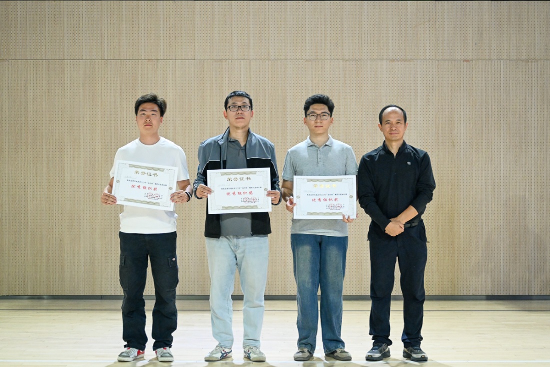 校工会副主席徐丽,电气学院党委副书记胡祥萍,系统学院党委副书记、副院长任一豪为亚军队伍电气系统联队颁发奖杯